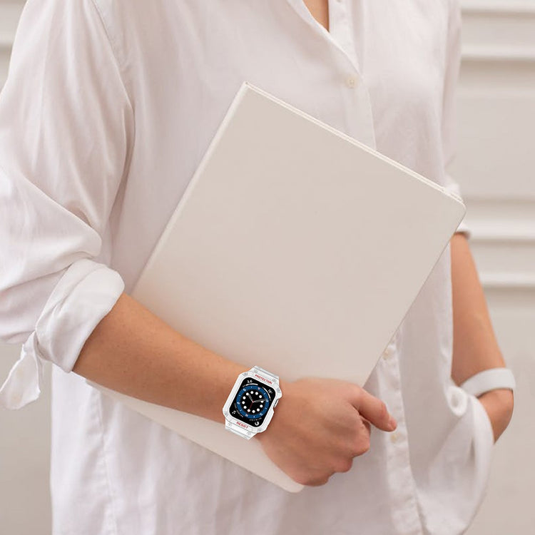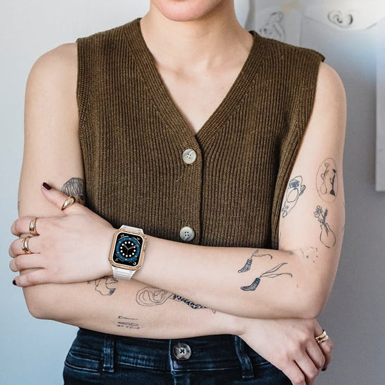 Dieses einteilige, galvanisierte Smartwatch-Ersatzband aus weichem TPU ist perfekt für Ihre Apple Watch. Das integrierte Design aus TPU-Armband und PC-Rahmen bietet angenehmen Tragekomfort dank moderater Weichheit. Die Metallschnalle und die mehreren Löcher ermöglichen eine einfache Anpassung der Größe. Ersetzen Sie Ihr altes, defektes Armband mit diesem stilvollen und schlichten einfarbigen Design.