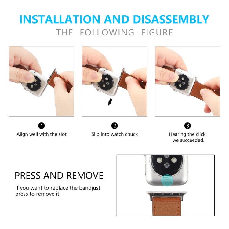 Dieses hochwertige Uhrenarmband aus echtem Rindsleder (Obernarbenleder) ist langlebig und angenehm zu tragen. Es eignet sich perfekt als Ersatz für Ihr altes, defektes Armband und verleiht Ihrer Apple Watch einen stilvollen Look. Die Größe L passt für folgende Apple Watch Modelle: Series 9 / 8 / 7 41mm / 6 / 5 / 4 / SE (2023) / SE(2022) / SE 40mm / 3 / 2 / 1 38mm.