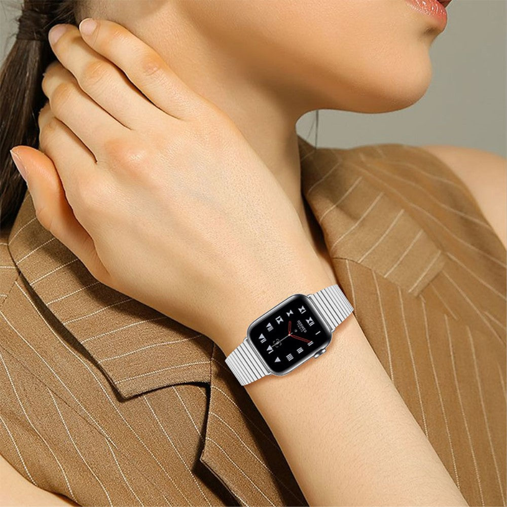 Ersetzen Sie Ihr altes, kaputtes Armband mit diesem hochwertigen Edelstahlarmband für Ihre Apple Watch. Das Armband besticht durch sein schlichtes Design und die praktische Doppelschnalle.