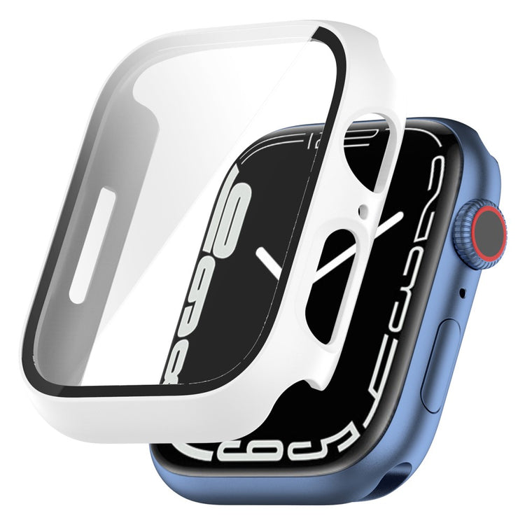 Fed Apple Watch Series 7 45mm Cover med Skærmbeskytter i Plastik og Hærdet Glas - Hvid#serie_1