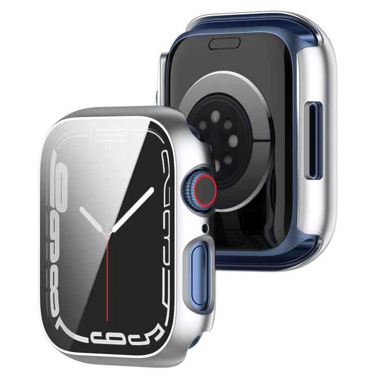 Fed Apple Watch Series 7 45mm Cover med Skærmbeskytter i Plastik og Hærdet Glas - Sølv#serie_10