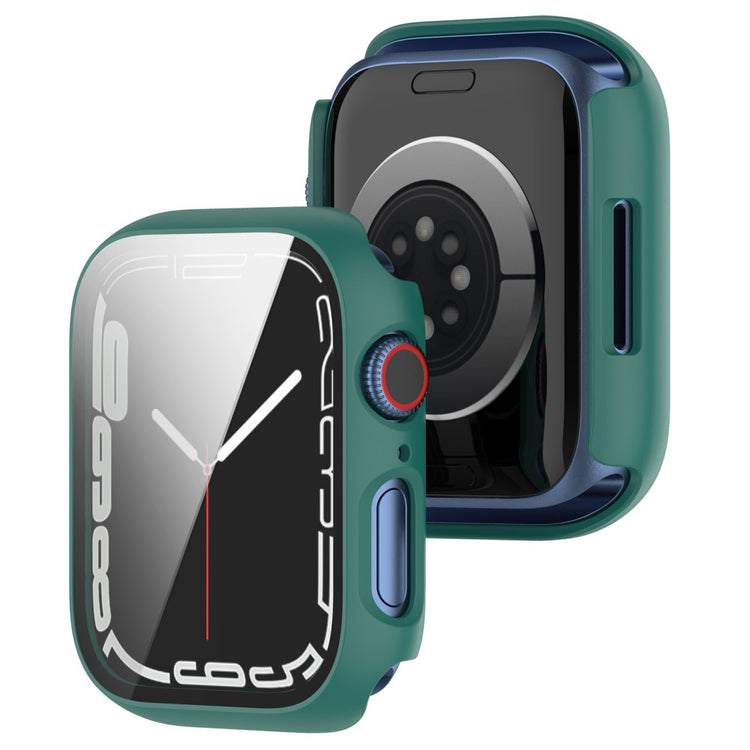 Fed Apple Watch Series 7 45mm Cover med Skærmbeskytter i Plastik og Hærdet Glas - Grøn#serie_3