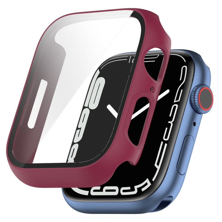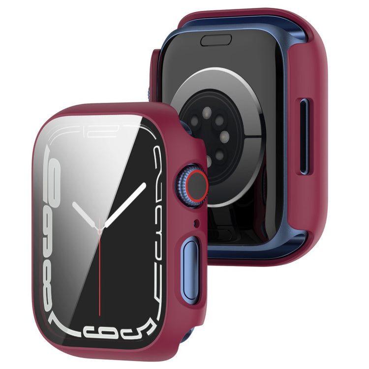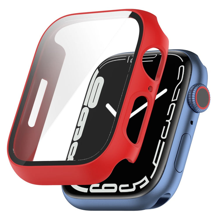 Fed Apple Watch Series 7 45mm Cover med Skærmbeskytter i Plastik og Hærdet Glas - Rød#serie_6