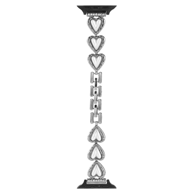 Verleihen Sie Ihrer Apple Watch mit diesem exquisiten Metallarmband eine raffinierte Note! Hergestellt aus hochwertigem Metallmaterial und verziert mit funkelnden Rhinestones sowie herzförmigen Dekorationen, ist dieses Armband nicht nur modisch, sondern auch elegant. Jedes Stück wird von erfahrenen Handwerkern gefertigt, sodass es sowohl hart als auch glaubwürdig im Tragekomfort ist. Die langlebige Schließe bietet zusätzlichen Schutz für Ihre Uhr und ist sicherer als viele andere Verschlüsse. Bei der Herstellung wurde auf jedes Detail in Bezug auf Verarbeitung, Design und Ästhetik geachtet. Dieses Armband eignet sich besonders gut für besondere Anlässe, Besprechungen, Partys, Reisen, geschäftliche Veranstaltungen und festliche gesellschaftliche Anlässe für Frauen. Mit einer Länge von 165 mm passt es an Handgelenke mit einem Umfang von 160-220 mm. Gönnen Sie sich dieses wunderschöne Armband und setzen Sie ein stilvolles Statement!