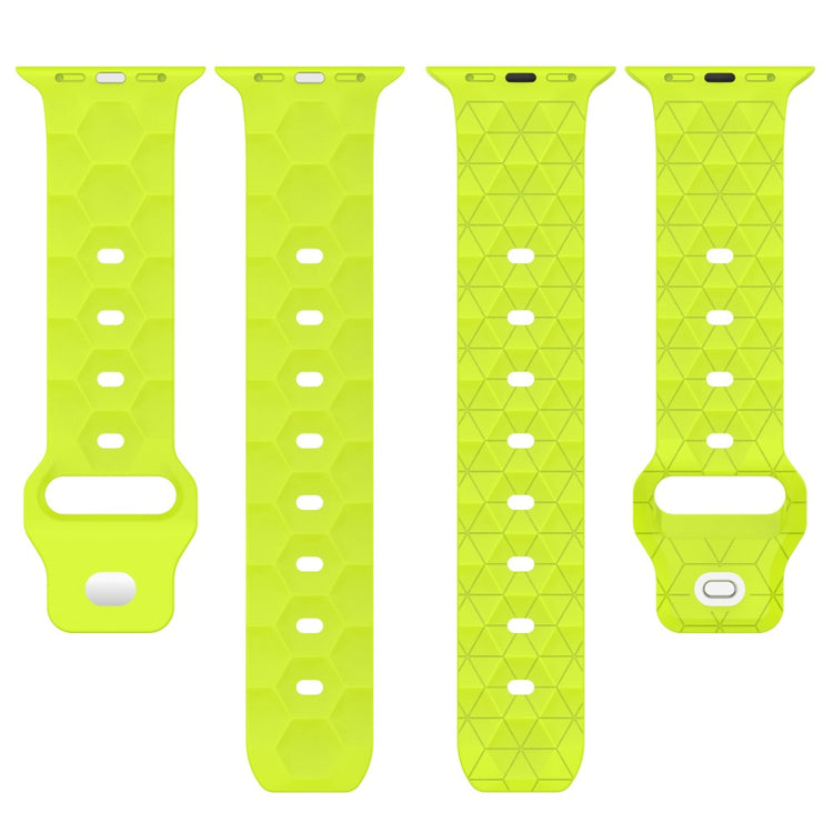 Wenn Sie auf der Suche nach einem stilvollen und funktionalen Armband für Ihre Apple Watch Series 9 / 8 / 7 41mm / 6 / 5 / 4 / SE (2022) / SE (2023) / SE 40mm / 3 / 2 / 1 38mm sind, ist das Fußballmuster-Uhrenband aus hochwertigem Silikon die perfekte Wahl. Dieses Armband ist nicht nur bequem zu tragen, sondern lässt sich auch mühelos mit Ihrem täglichen Outfit kombinieren. Das verwendete Material ist hautverträglich und verursacht keine Allergien, was es ideal für längeres Tragen macht. Zudem ist die Uhrenschnalle aus hochwertigen Materialien gefertigt und besticht durch ihre Langlebigkeit. Dank des Mehrloch-Designs können Sie die Größe bequem anpassen, sodass es sowohl für Männer als auch Frauen geeignet ist. Es stellt eine ideale Ersatzlösung für ein altes oder defektes Armband dar und eignet sich bestens für Arbeits-, Freizeit- oder alltägliche Anlässe. Verbessern Sie Ihren Stil mit diesem funktionalen ACCESSoire!