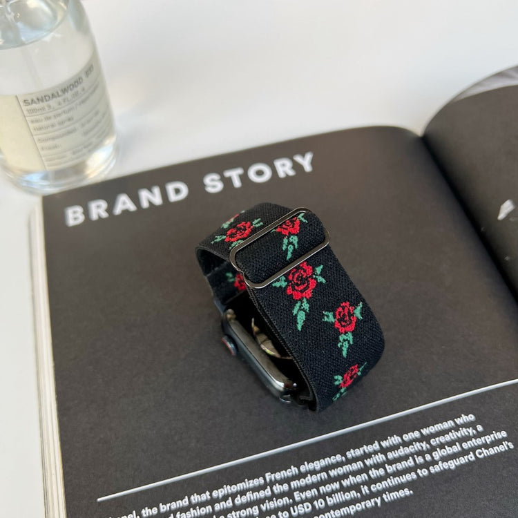 AW Apple Watch 41mm / 40mm / 38mm Nylon Watch Strap - Black Leaf Rose