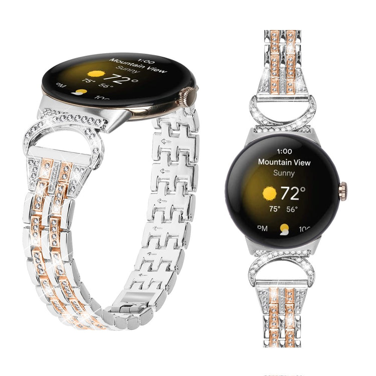 Entscheiden Sie sich für das Uhrenarmband aus Edelstahl mit Rhinestone-Dekor für Ihre Google Pixel Watch 2 oder Pixel Watch und verleihen Sie Ihrem Smartwatch-Look einen eleganten Touch. Dieses Armband besteht aus hochwertigem Edelstahl, der äußerst abriebfest und langlebig ist. Die zwei Reihen schillernder Rhinestones sorgen für einen einzigartigen und stilvollen Akzent, der Ihre Smartwatch zu einem persönlichen Accessoire macht. Ein ideales Armband, um Ihr altes oder defektes Armband zu ersetzen und Ihrer Uhr eine frische Note zu verleihen. Der praktische Entwurf ermöglicht den Zugang zu allen Bedienelementen, Tasten, Sensoren und Funktionen Ihrer Uhr. Setzen Sie auf Qualität und Stil – es ist der perfekte Begleiter für jeden Anlass!
