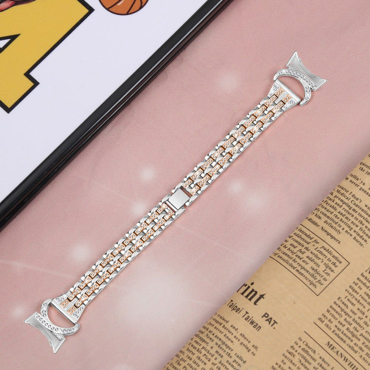 Dieses Uhrenarmband aus Edelstahl ist strapazierfähig und langlebig. Mit zwei Reihen glänzender Strasssteine verziert, verleiht es Ihrer Smartwatch einen einzigartigen und stilvollen Look. Verleihen Sie Ihrer Smartwatch mit diesem edlen Ersatz-Armband eine persönliche Note. Es ist der ideale Ersatz für Ihr altes, defektes Armband.