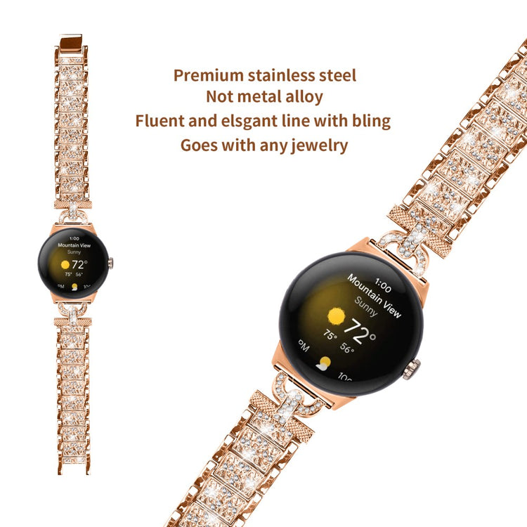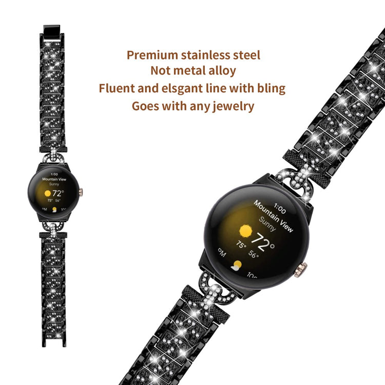 Google Pixel Watch rhinestone décor stainless steel strap