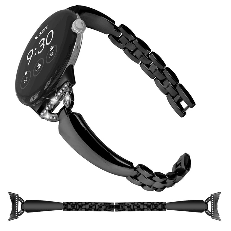 Meget Kønt Metal Og Rhinsten Rem passer til Google Pixel Watch - Sort#serie_1