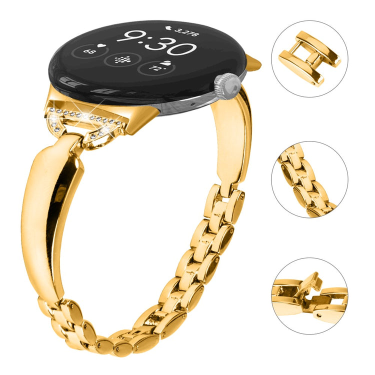 Meget Kønt Metal Og Rhinsten Rem passer til Google Pixel Watch - Guld#serie_2