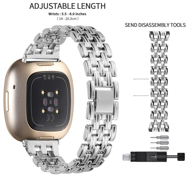 Die hochwertige Edelstahl-Ersatzarmband für die Fitbit Versa 4 / Sense 2 bietet Ihnen eine perfekte Kombination aus Eleganz und Komfort. Hergestellt aus sorgfältig verarbeitetem Edelstahl, anstelle von billigen Zink- oder Aluminiumlegierungen, umschließt dieses Armband sanft Ihr Handgelenk und macht es zu einem angenehmen täglichen Accessoire. Das ausgefallene 5-Perlen-Design verleiht Ihrem Outfit einen klassischen und stilvollen Akzent. Wenn Ihr altes Armband beschädigt ist oder Sie einfach nur nach einem neuen Look suchen, ist dieses elegante Armband die ideale Wahl für Sie. Gönnen Sie sich das Beste für Ihre Smartwatch und erfreuen Sie sich an der Robustheit und dem zeitlosen Stil dieses edlen Ersatzbandes.