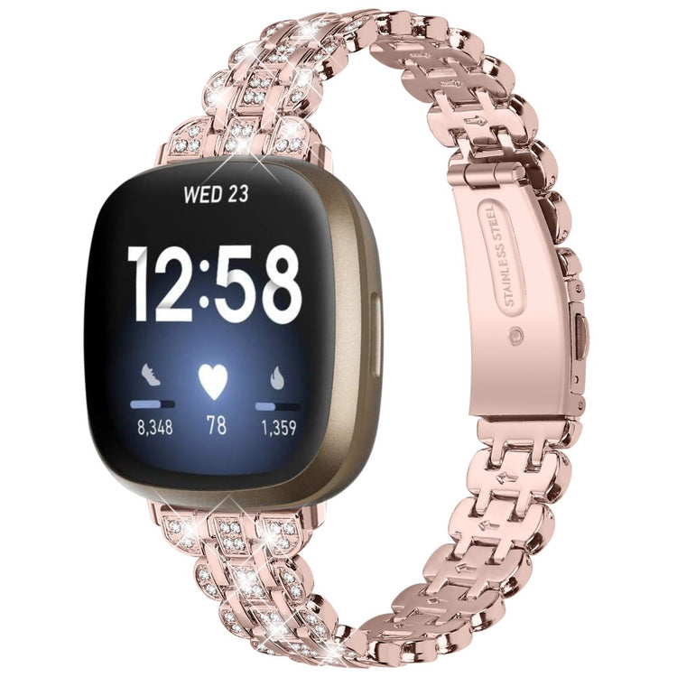 Erleben Sie die perfekte Kombination aus Stil und Funktionalität mit unserem Metallarmband für Fitbit Versa 4 / Sense 2, das mit funkelnden Rhinestones verziert ist. Hergestellt aus hochwertigem Metallmaterial, bietet dieses Armband nicht nur eine hohe Langlebigkeit, sondern verleiht Ihrer Smartwatch auch einen eleganten, persönlichen Touch. Der metallene Klappverschluss sorgt für zusätzliche Sicherheit und ermöglicht ein einfaches An- und Ablegen des Armbands. Jedes Detail wurde mit größter Sorgfalt in Bezug auf Verarbeitung, Design und Ästhetik berücksichtigt. Ideal als Ersatz für Ihr altes oder defektes Armband, passt es perfekt an Handgelenke mit einem Umfang von 5.5 bis 8.1 Zoll. Verleihen Sie Ihrer Smartwatch eine neue, glamouröse Note und machen Sie sie zu einem echten Blickfang!