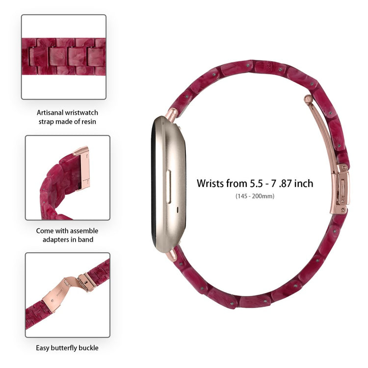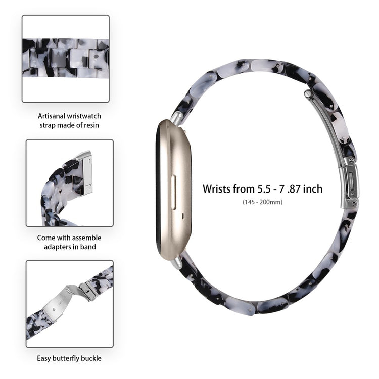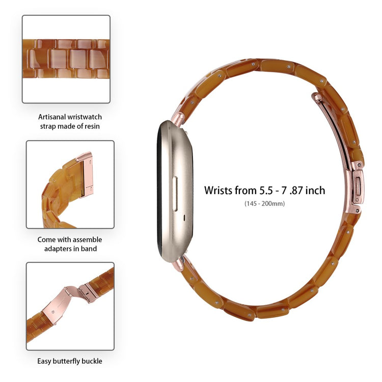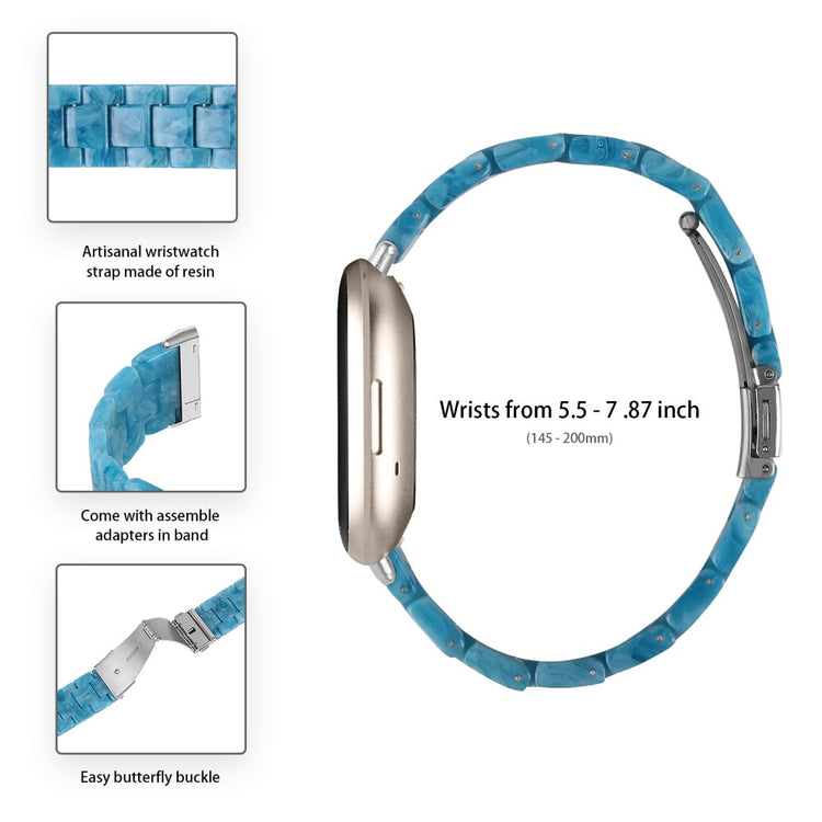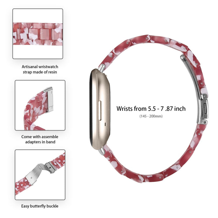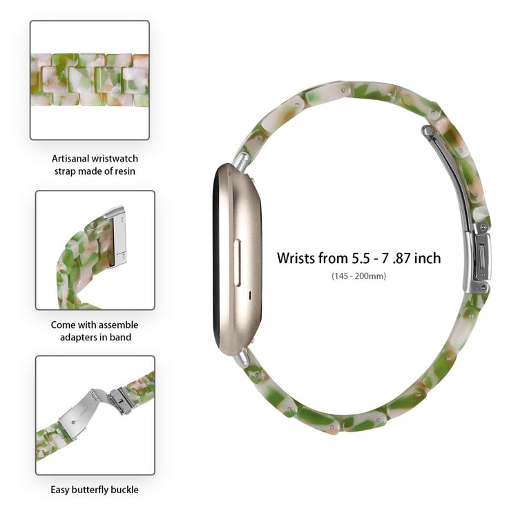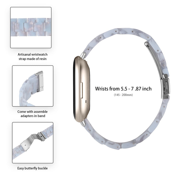 Entscheiden Sie sich für das hochwertige Armband aus Resin und Edelstahl, das perfekt mit Ihrer Fitbit Versa 4 oder Sense 2 harmoniert. Dieses Armband vereint Schönheit und Langlebigkeit, da es aus erstklassigen Materialien hergestellt ist. Die feine Verarbeitung sorgt dafür, dass Ihr Smartwatch-Accessoire sowohl elegant als auch stilvoll aussieht und Ihre persönliche Note unterstreicht. Das praktische Faltverschlussdesign ermöglicht ein einfaches An- und Ablegen, sodass Sie Ihr Armband im Handumdrehen bereit haben. Jedes Stück Resin wird von erfahrenen Handwerkern langsam poliert, was für eine solide und glatte Oberfläche sorgt und ein angenehmes Tragegefühl bietet. Dieses Armband ist die ideale Wahl als Ersatz für Ihr altes, beschädigtes Armband und passt mit einer Breite von 22 mm und einer Länge von 17,2 cm für Handgelenke mit einem Umfang von 5,5 bis 7,87 Zoll (145-200 mm). Gönnen Sie sich etwas Besonderes und werten Sie Ihre Smartwatch auf!