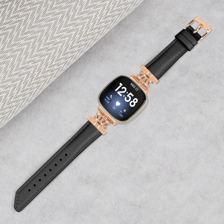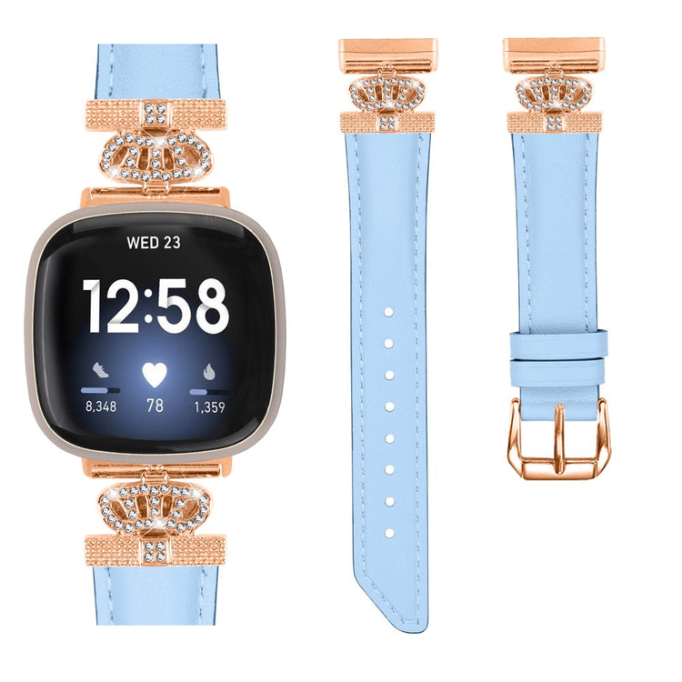 Entscheiden Sie sich für das Armband aus hochwertigem, echtem Rindsleder für Ihre Fitbit Versa 3 / Versa 4 / Sense / Sense 2 und erleben Sie den Komfort, den es zu bieten hat. Es fügt sich mühelos in Ihre alltäglichen Outfits ein und verleiht Ihrem Smartwatch-Look einen eleganten Touch. Der stilvolle Connector in Krönchenform und das funkelnde Design mit Strasssteinen machen Ihre Uhr noch schöner und modischer. Dank des praktischen Mehrfachloch-Designs können Sie die Größe des Armbands ganz einfach anpassen. Das strapazierfähige Armband wird durch die hochwertige Edelstahl-Schließe ergänzt und garantiert eine langlebige Nutzung. Es ist die perfekte Ersatzlösung für Ihr altes, defektes Armband und eignet sich ideal für Arbeit, Freizeit oder andere alltägliche Anlässe. Gönnen Sie sich dieses exklusive Armband und setzen Sie Akzente mit Ihrem Smartwatch-Style!