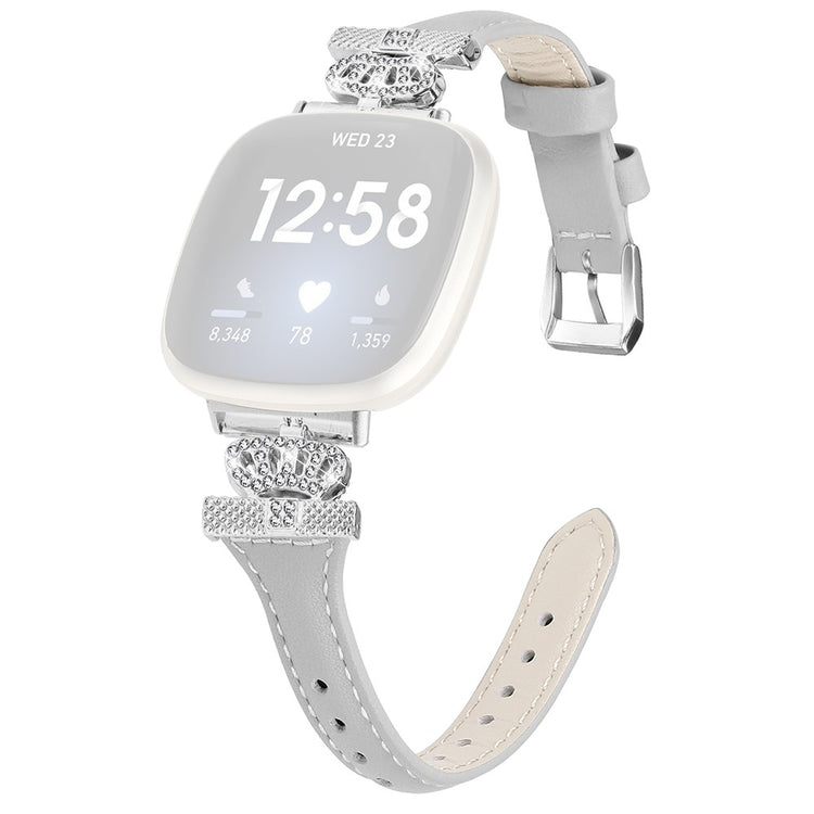 Dieses Armband für Fitbit Versa 3 / 4 / Sense / Sense 2 besteht aus hochwertigem echtem Rindsleder und ist angenehm zu tragen, sodass es leicht zu Ihrer täglichen Garderobe passt. Der elegante kranzförmige Verbinder und das Design mit funkelnden Rhinestones verleihen Ihrer Smartwatch einen stilvollen Touch. Mit dem praktischen Vielloch-Design lässt sich die Größe bequem anpassen, und die strapazierfähige Edelstahl-Schnalle sorgt dafür, dass das Armband langlebig bleibt.