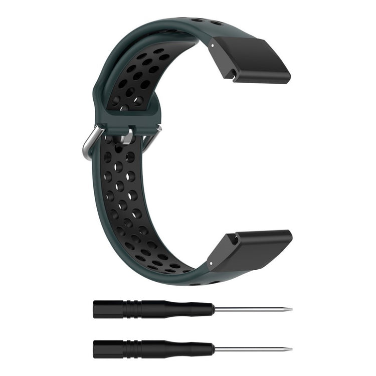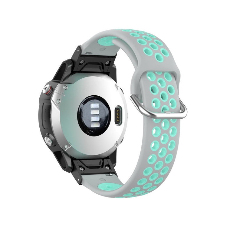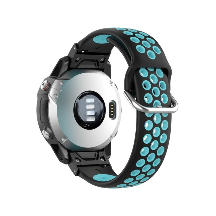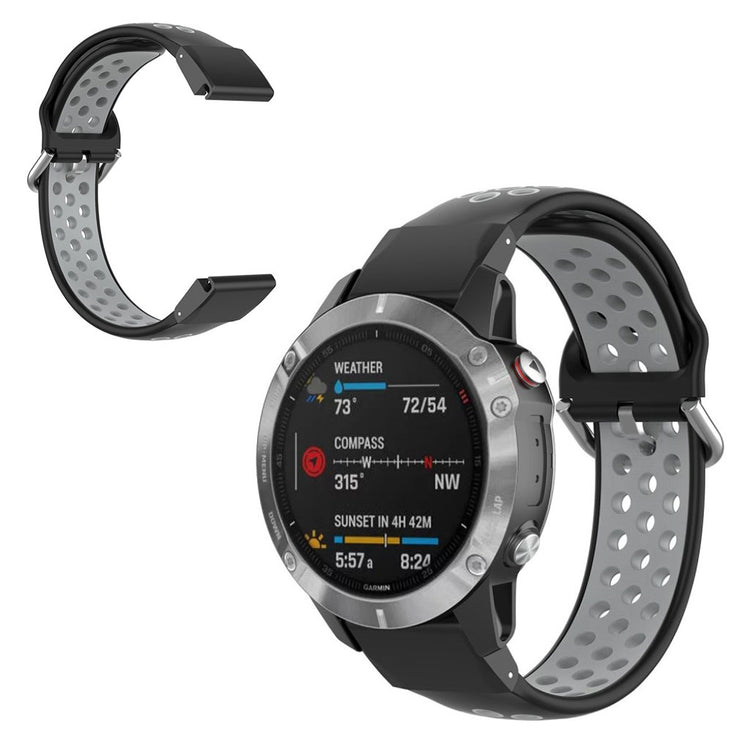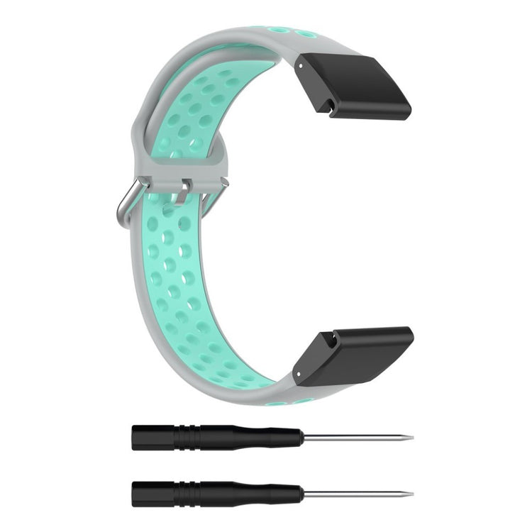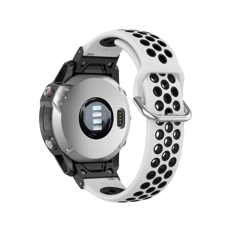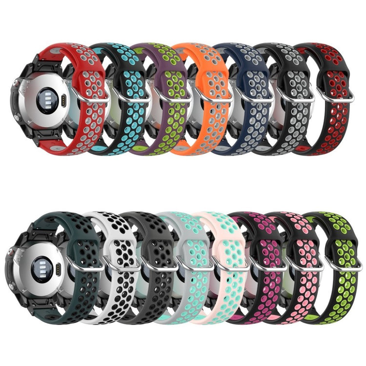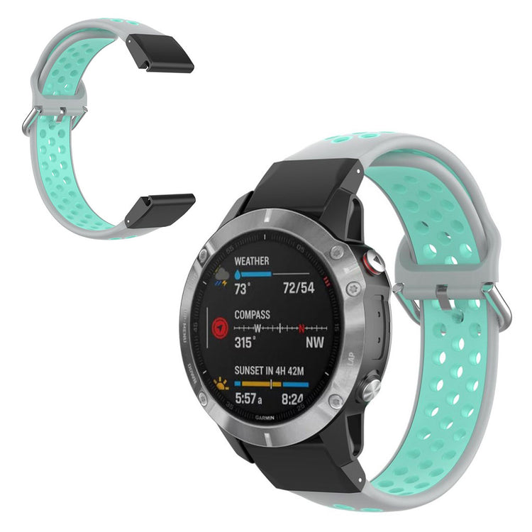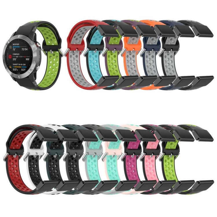 Dieses zweifarbige Silikonarmband verleiht Ihrer Garmin Fenix Smartwatch einen modernen Look. Das weiche Silikonmaterial mit Luftlöchern sorgt für eine schnelle Wärmeableitung und einen angenehmen Tragekomfort.