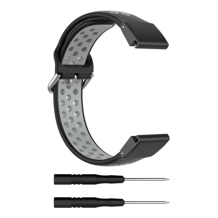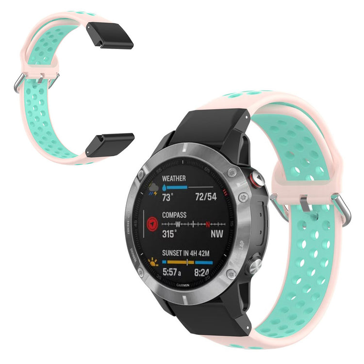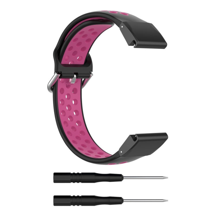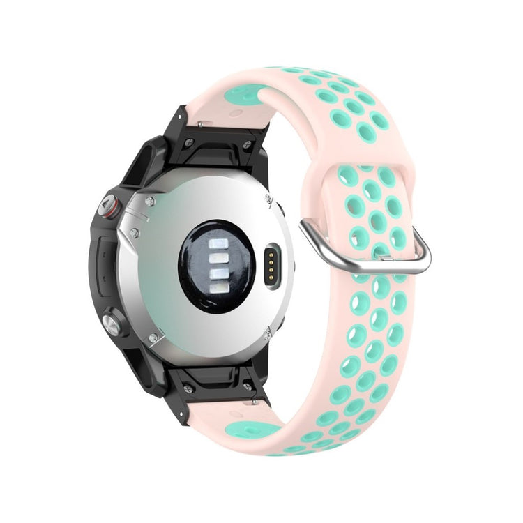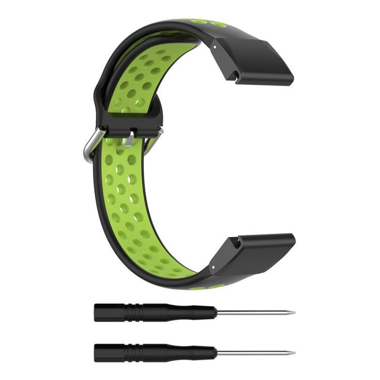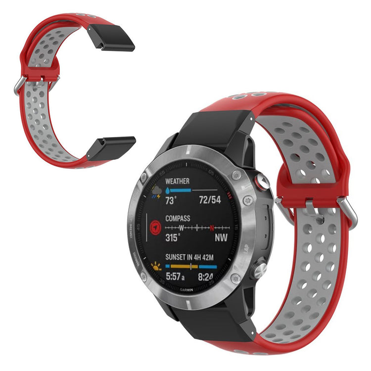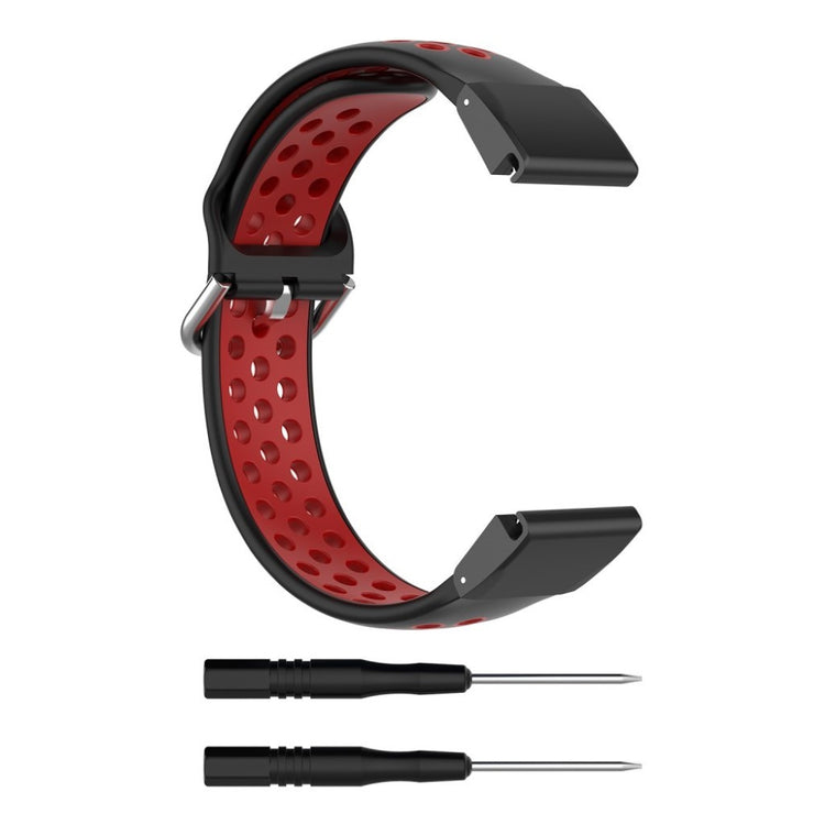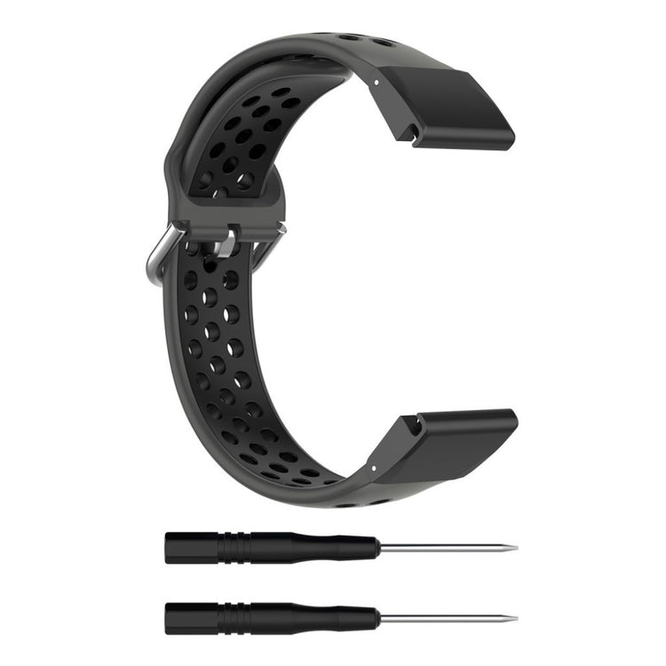 Dieses zweifarbige Silikonarmband verleiht Ihrer Garmin Fenix Smartwatch einen modernen Look. Das weiche Silikonmaterial mit Luftlöchern sorgt für eine schnelle Wärmeableitung und einen angenehmen Tragekomfort.