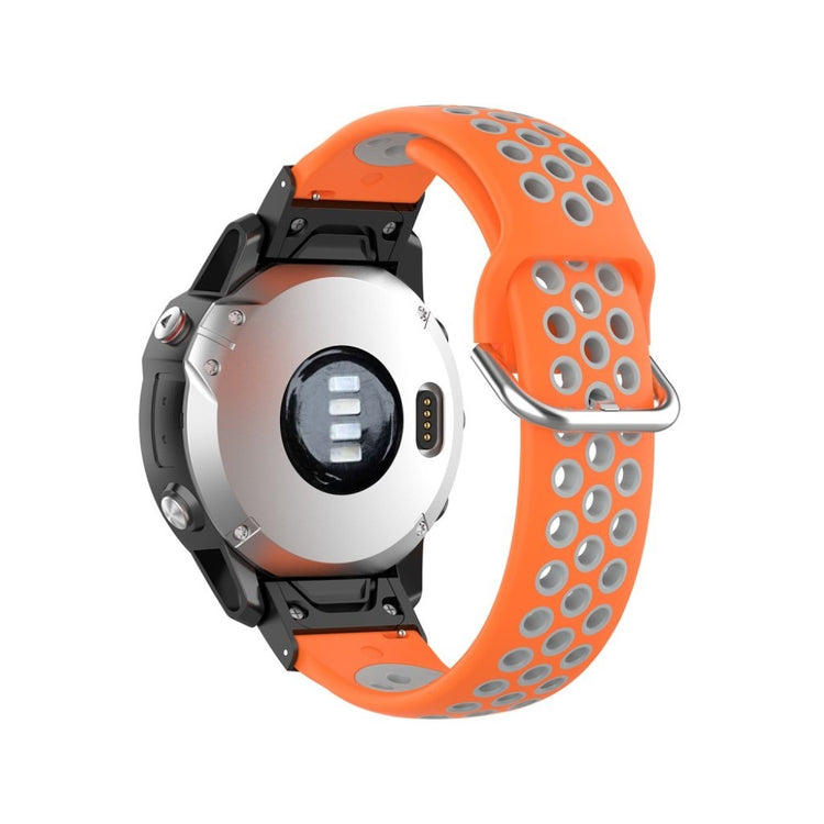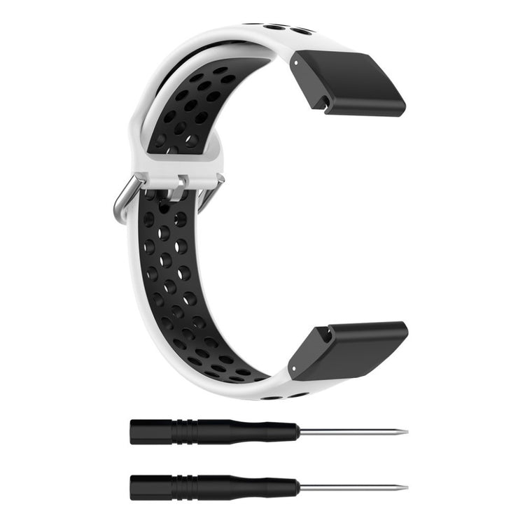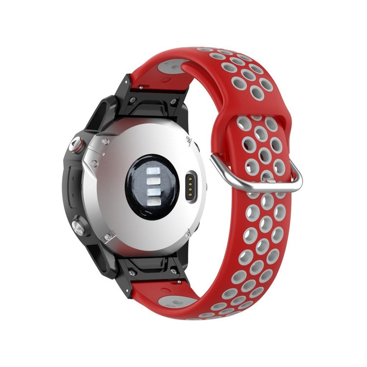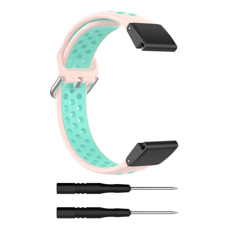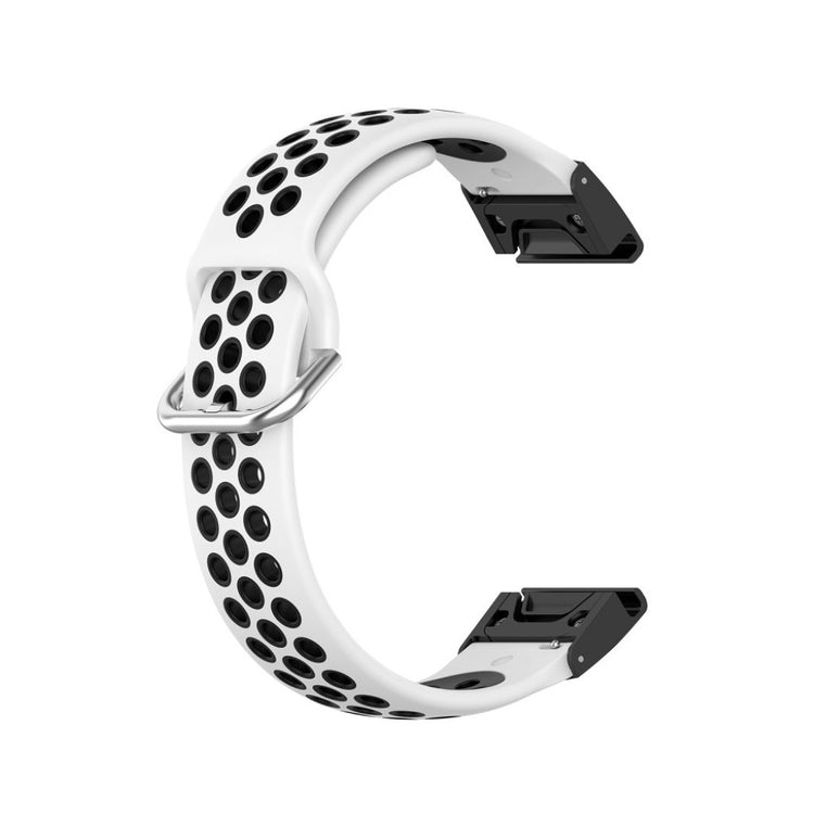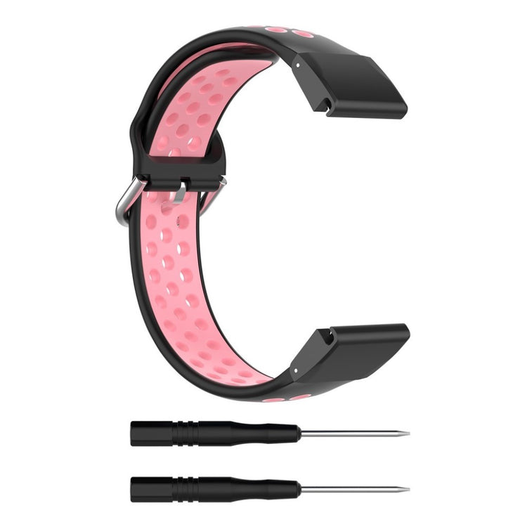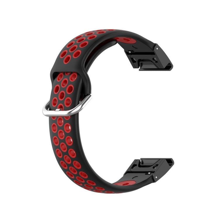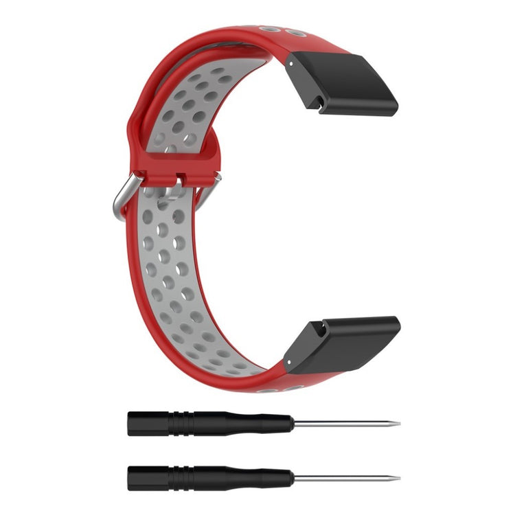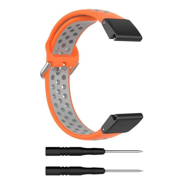 Dieses zweifarbige Silikonarmband verleiht Ihrer Garmin Fenix Smartwatch einen modernen Look. Das weiche Silikonmaterial mit Luftlöchern sorgt für eine schnelle Wärmeableitung und einen angenehmen Tragekomfort.